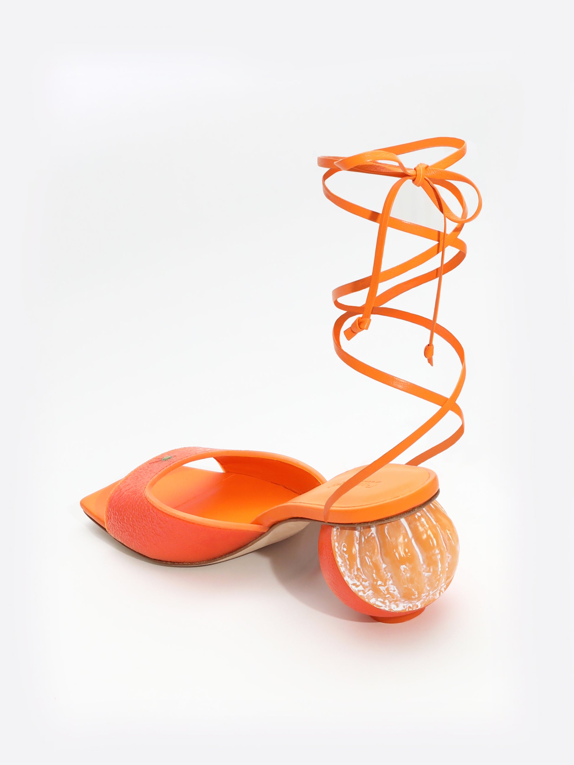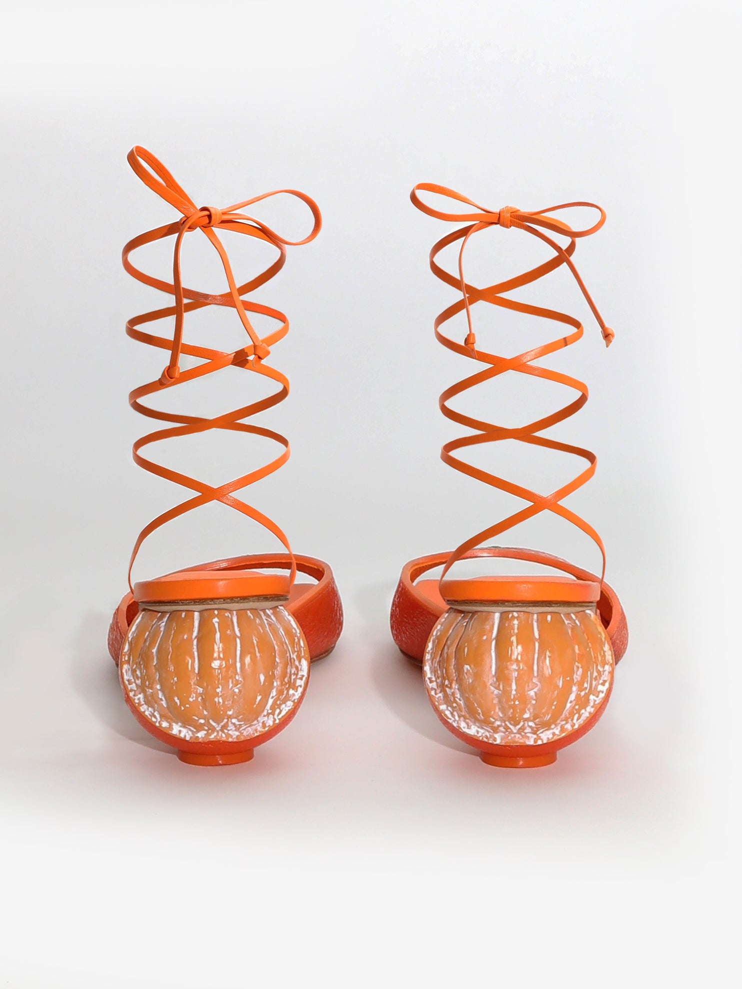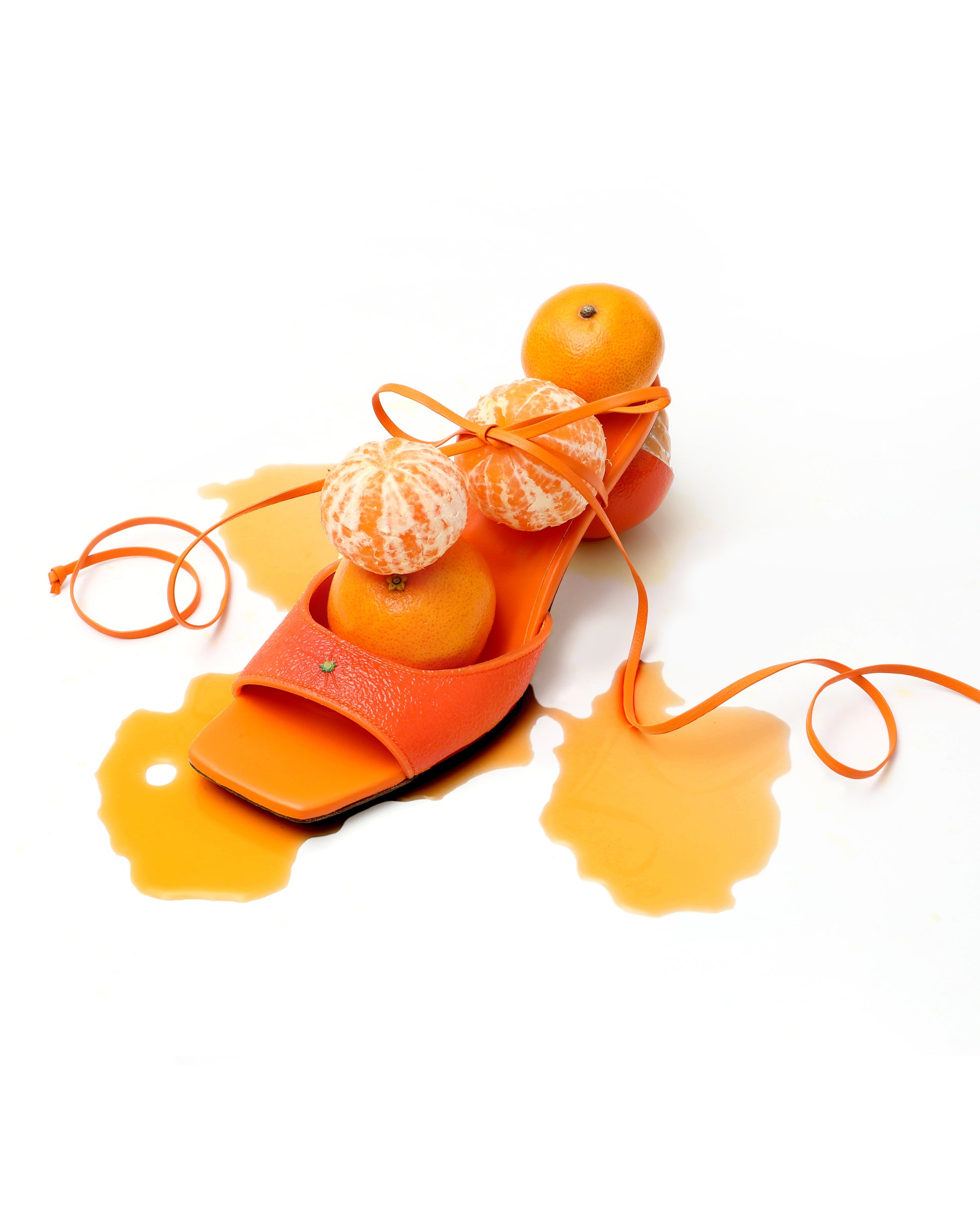 Fabriquées et peintes à la main par des artisans en Italie et réalisées à partir du moulage d’une véritable clémentine, ces escarpins constituent une pièce unique et originale. Il s’agit d’une édition limitée de 100 paires.
