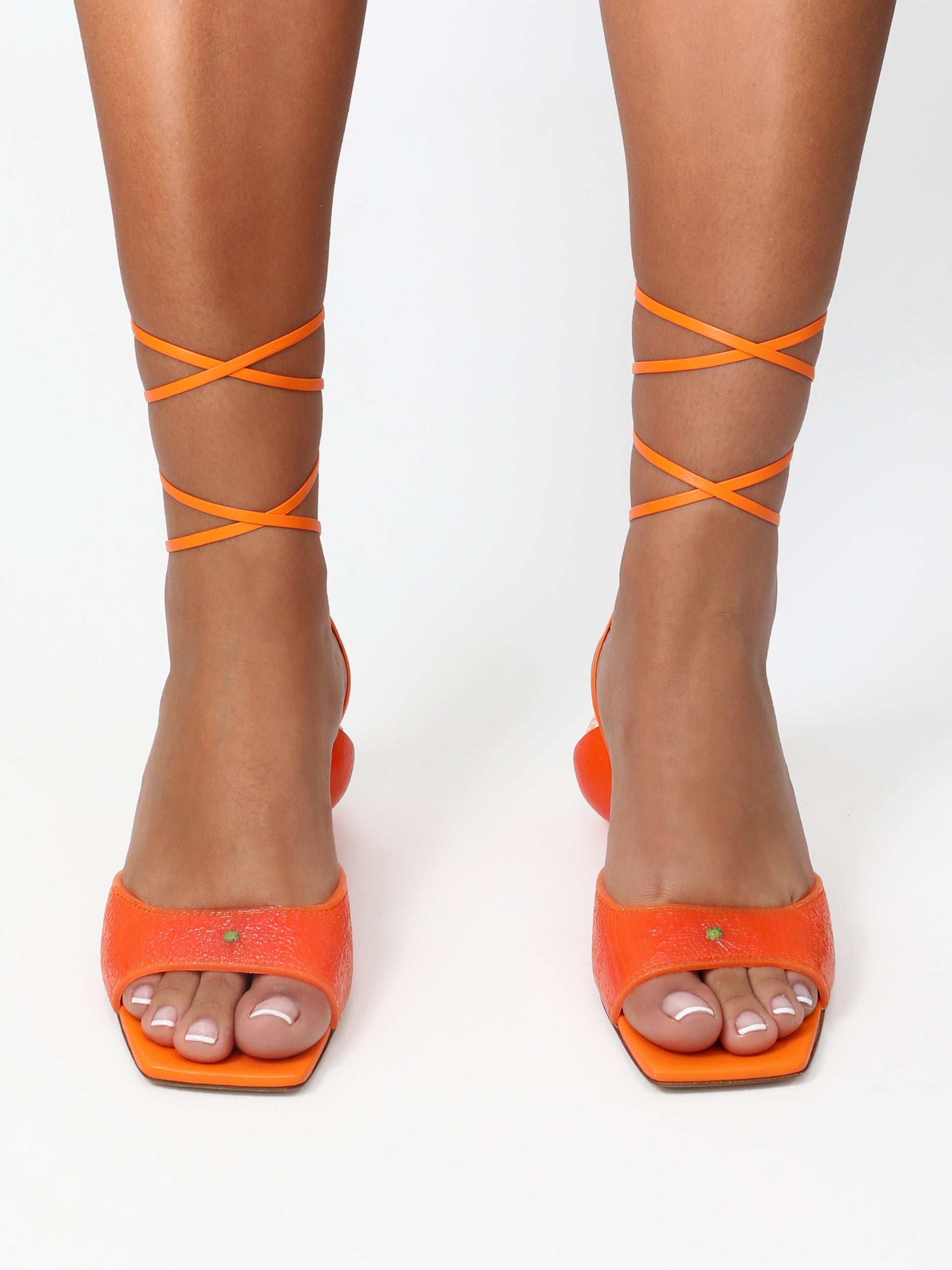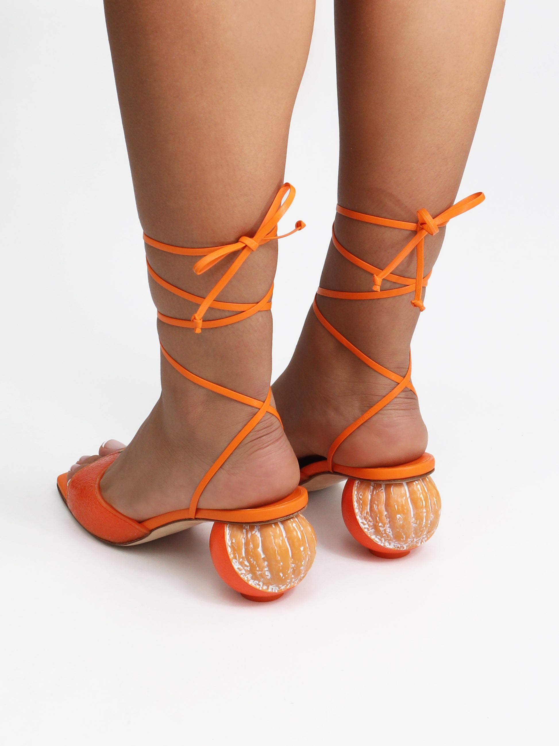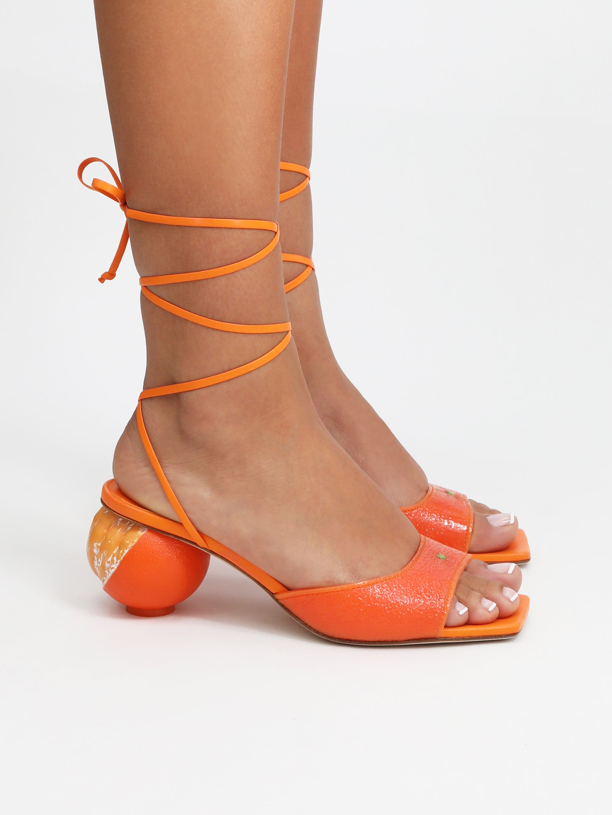 Fabriquées et peintes à la main par des artisans en Italie et réalisées à partir du moulage d’une véritable clémentine, ces escarpins constituent une pièce unique et originale. Il s’agit d’une édition limitée de 100 paires.